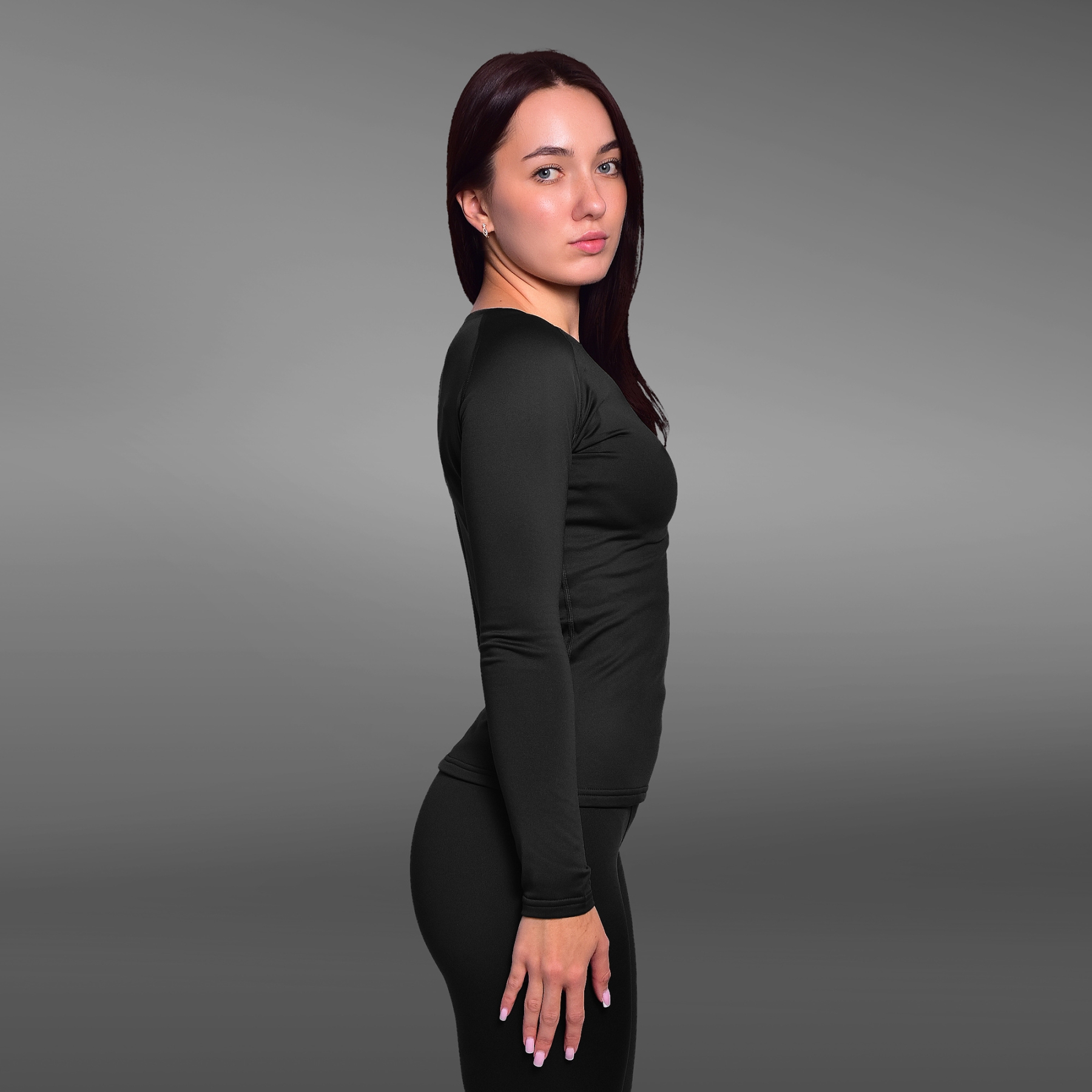 Женское термобелье реглан GigMilitary IceFox Level 1+, з тканини Thermo line. Чорний